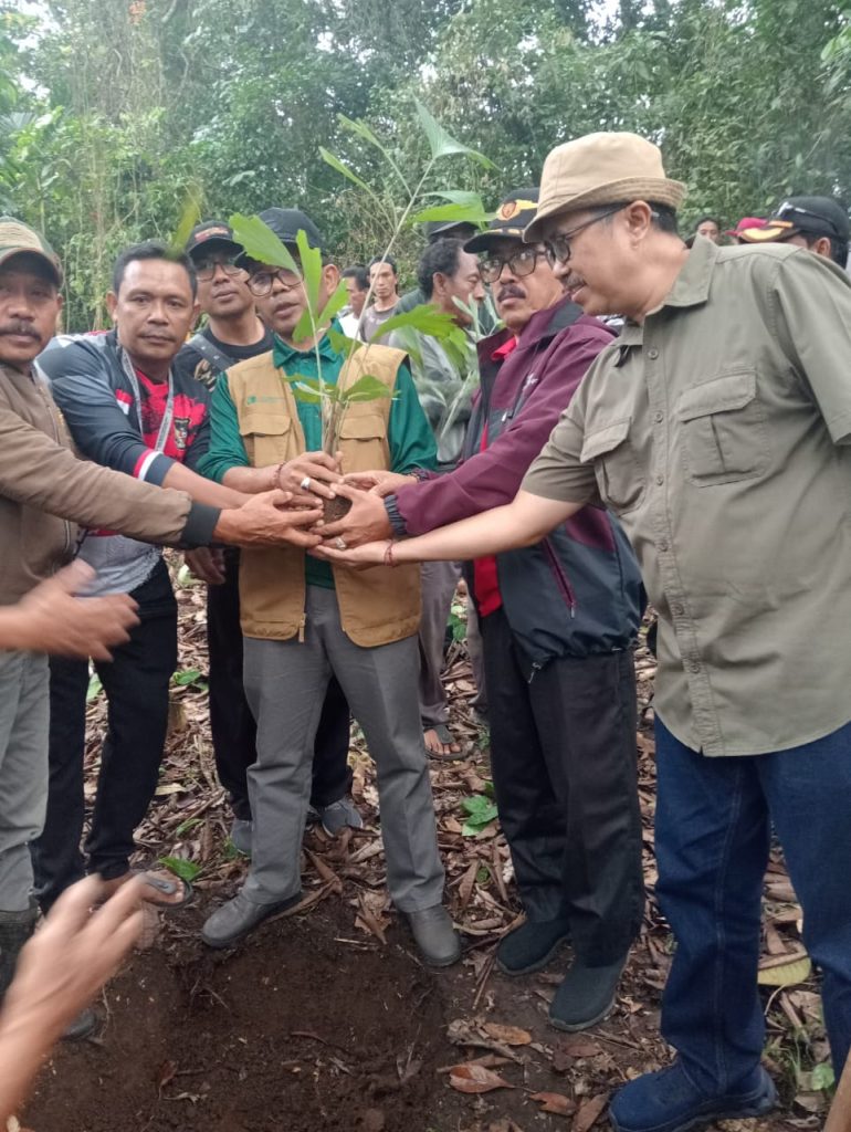 Kunjungan tersebut diakhiri dengan aksi simbolis penanaman kembali 15 bibit pohon produktif, yakni durian, manggis, dan aren, sebagai simbol komitmen bersama menjaga kelestarian hutan.