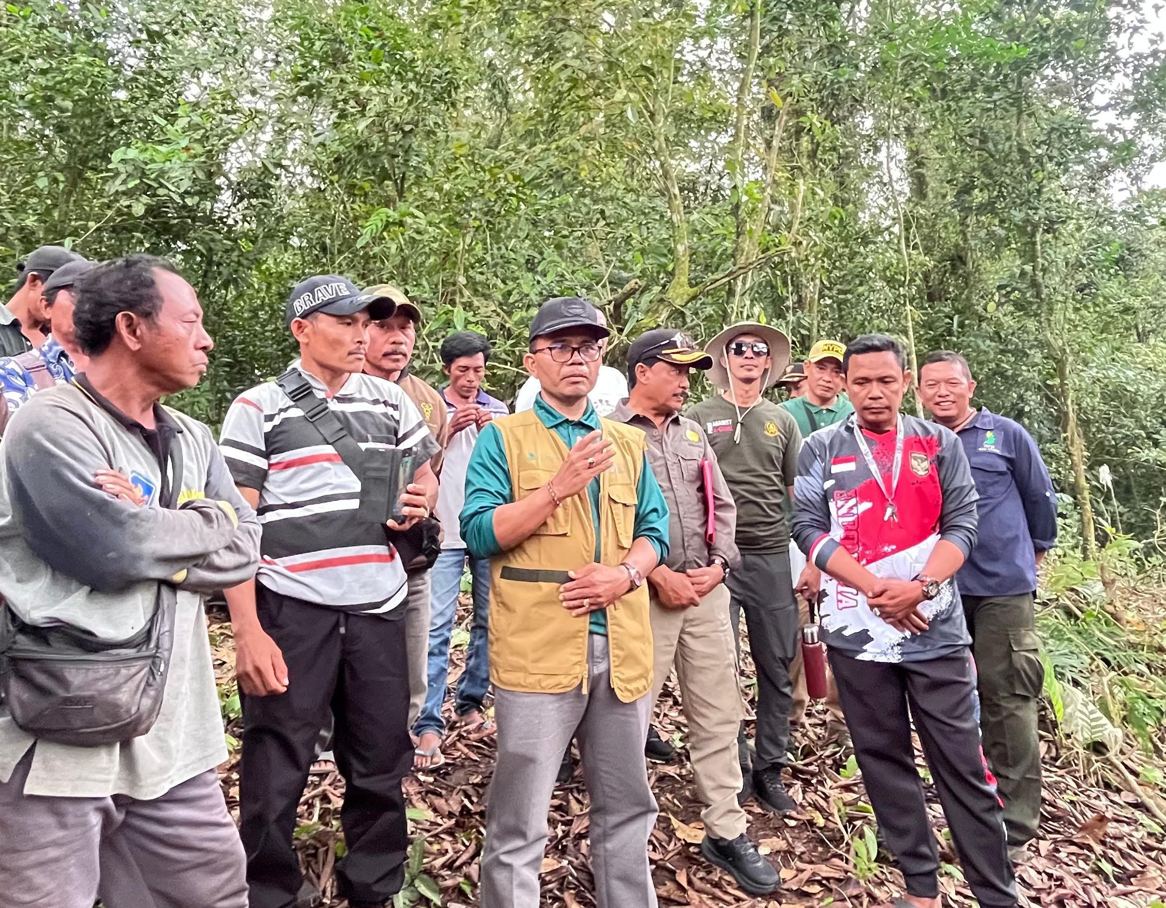 Kunjungan tersebut diakhiri dengan aksi simbolis penanaman kembali 15 bibit pohon produktif, yakni durian, manggis, dan aren, sebagai simbol komitmen bersama menjaga kelestarian hutan.