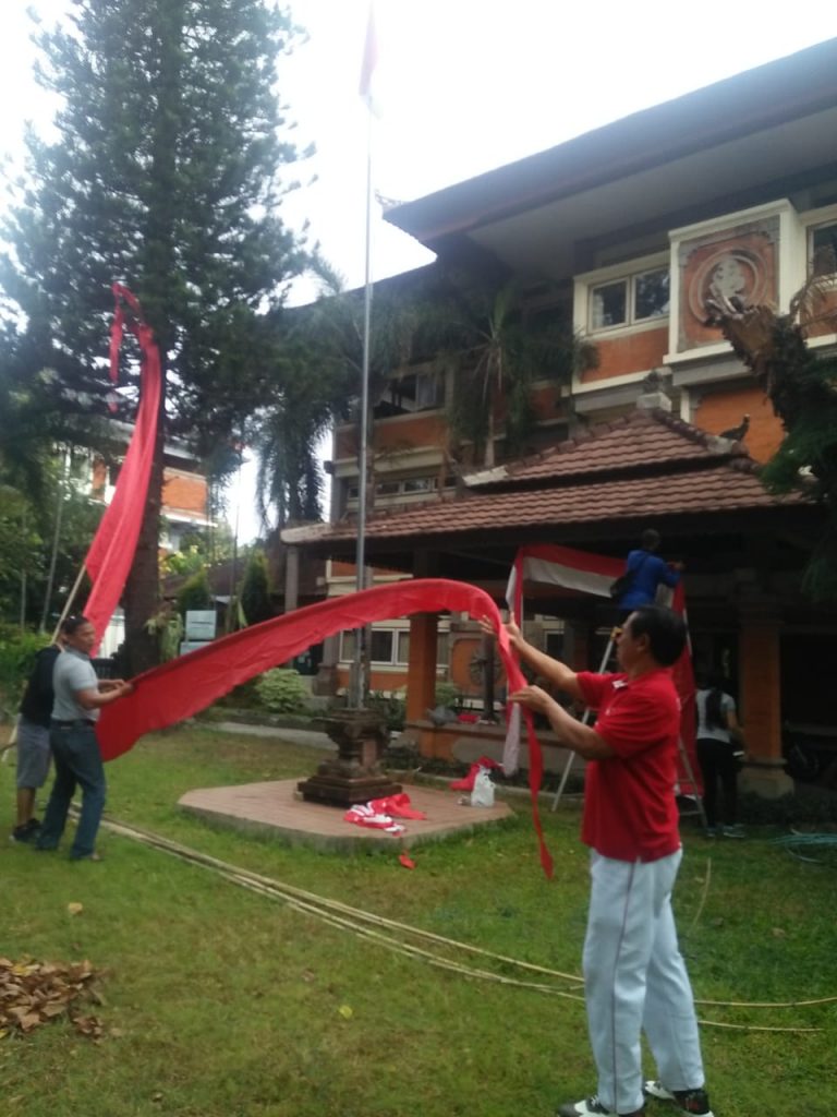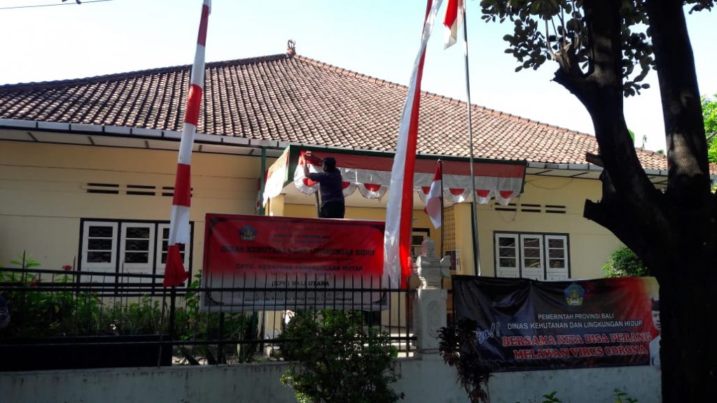Dokumentasi Pemasangan Bendera menyambut Hari Kemerdekaan RI ke-75 di Kantor DKLH Prov. Bali & UPTD